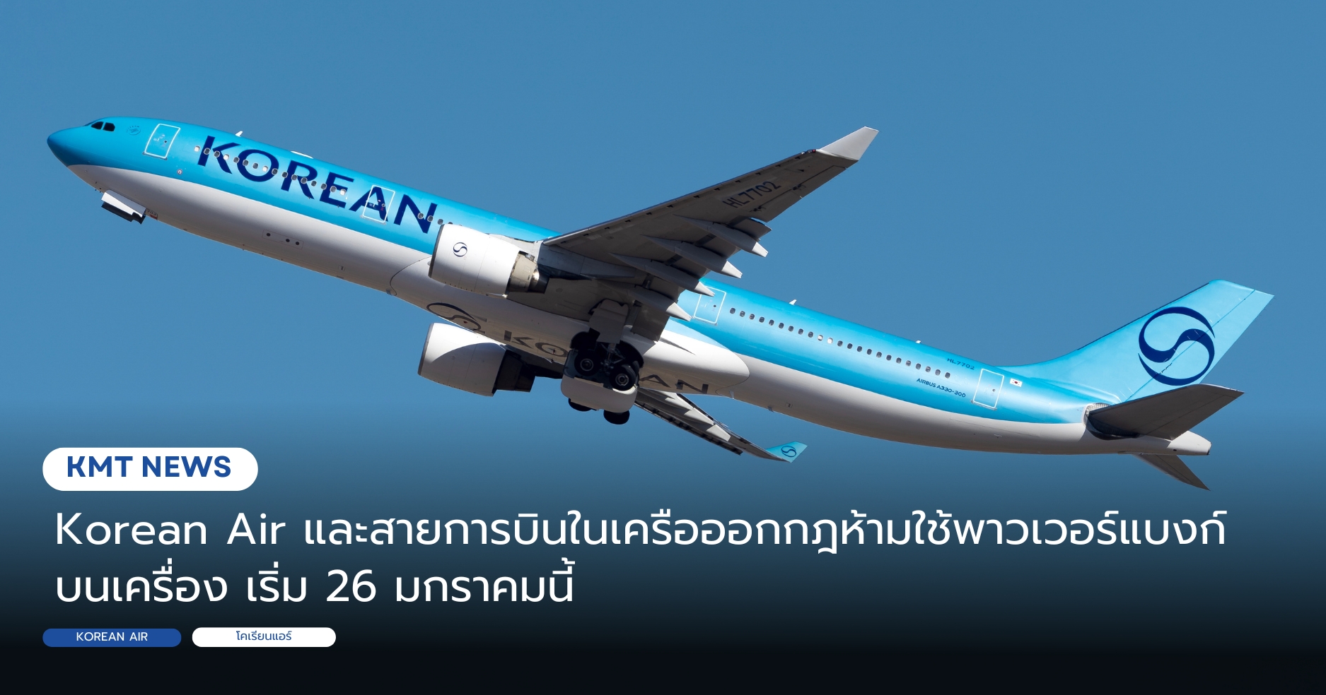 Korean Air และสายการบินในเครือออกกฎห้ามใช้พาวเวอร์แบงก์บนเครื่อง เริ่ม 26 มกราคมนี้